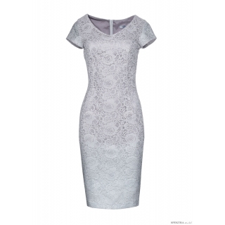 Bardzo elegancka, klasyczna koronkowa sukienka. idelana na wesela i stylowe przyjęcia. Sukienka z delikatnym zagęszczeniem koronki na dole z delikatnymi szarym gradientem.