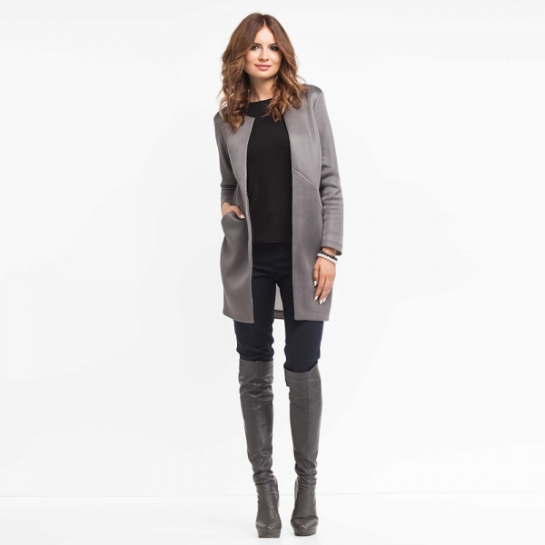 Płaszcz z siatki z kieszeniami po bokach - głęboka szarość